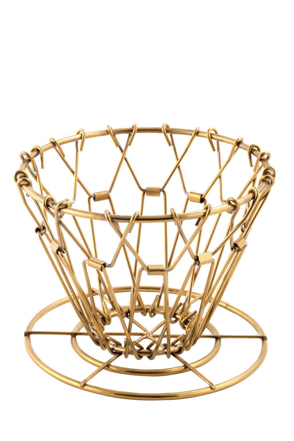 使用しない時はコンパクトに折り畳んで収納できるブラスカラーのワイヤーコーヒードリッパー。