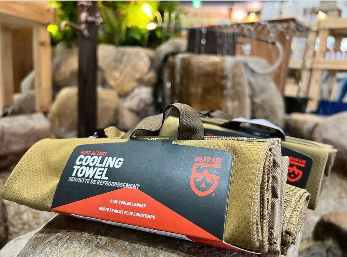 水に濡らして絞って振るだけの簡単ステップで最大 2 時間の冷却効果を発揮するクーリングタオルです。