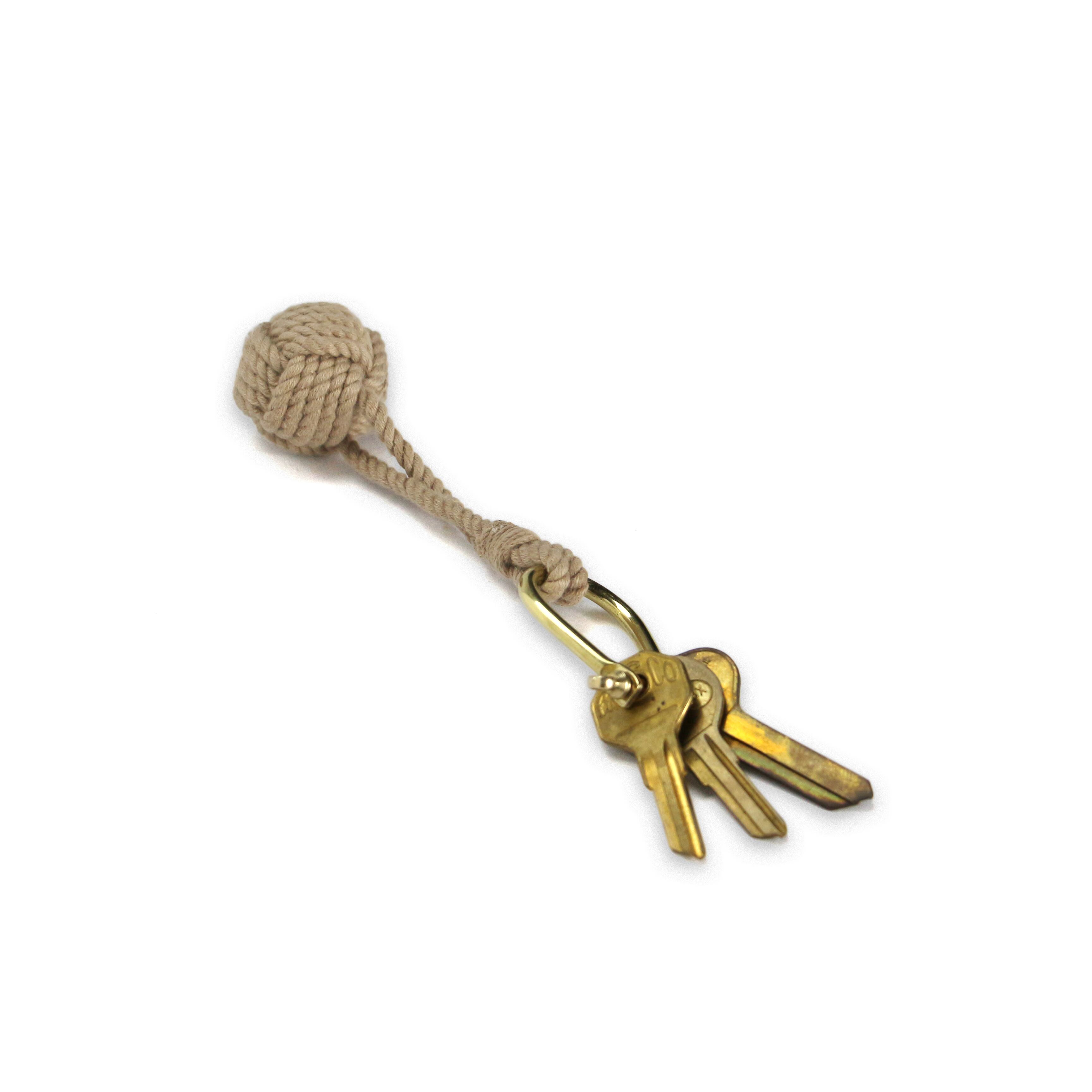 Monkey Fist Knot(モンキーフィストノット)』と呼ばれるロープの編み方で作成されたコットン製キーリング。